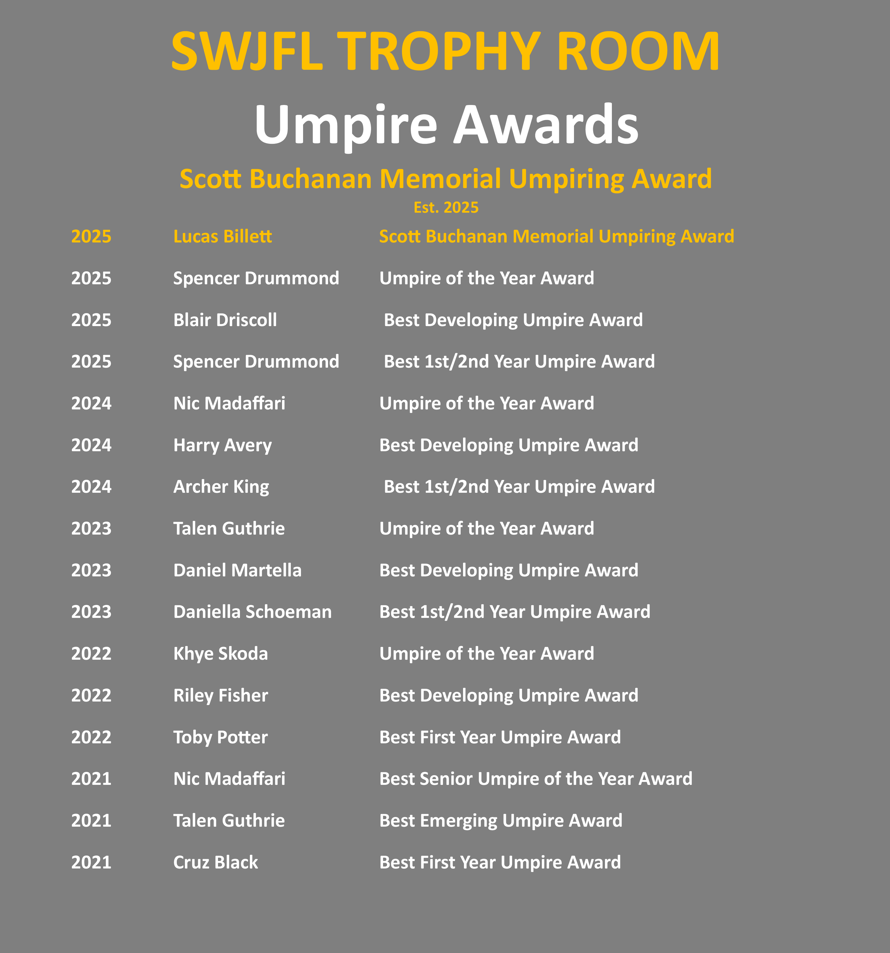 Clubs will appoint umpires for games in the Year 3-6 bracket, while the SWJFL will make appointments in other grades. You can see appointments by clicking here